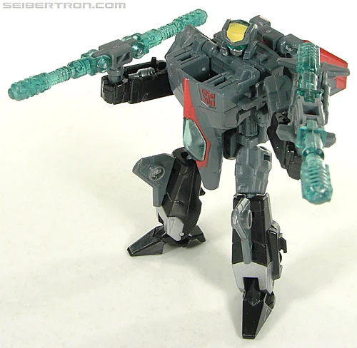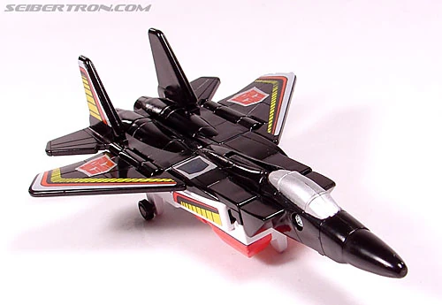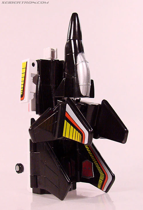 Abilities: Air Raid can fly at speeds of up to Mach 2.5 and has a range of 1500 miles. He can shoot air-to-air heat-seeking missiles and, in robot mode, carries a torque rifle whose beam can allpy up to 80,000 psi of rotational force to any object. Only the strongest materials can withstand warping and breaking under such pressure. He combines with his fellow Aerialbots to form the giant robot known as Superion.