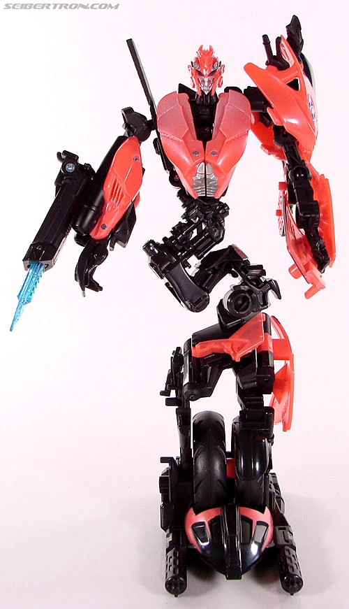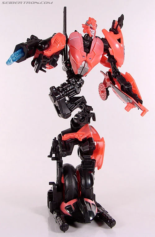 ARCEE jumped at the chance to join up with IRONHIDE and the other DECEPTICON hunters on Earth. She proved such an effective warrior that she was quickly given command of her own strike team, made up of robots similar to her in attitude and design. Together with the AUTOBOTS she leads, she stalks the DECEPTICONS in silence, creeping close enough to look them in the optics before she strikes.